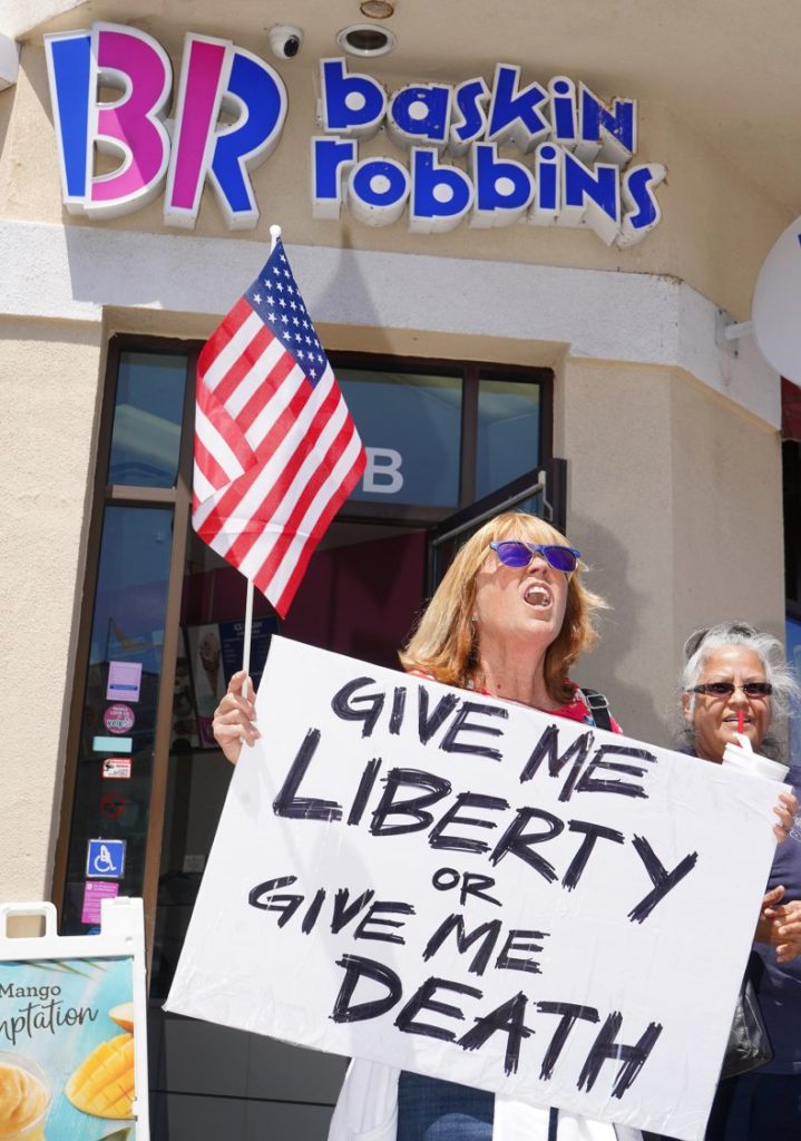 The bafflegab comes strong and fast, one degraded word and metaphor after another. ‘Freedom’ and ‘Liberty’ have taken a solid thrashing over the past 40 years, denuded of any real meaning by relentless deployment in service of selling cars and trucks and sundry other shiny objects, not to mention their use as cudgel to differentiate “patriots” from “libtards” &c. The sight of literally tens and twenties of outraged protesters demanding their Constitutionally protected right to get a haircut – in the name of Freedom! and Liberty! – could only attain greater comic amplitude if they painted their faces blue like Mel Gibson.